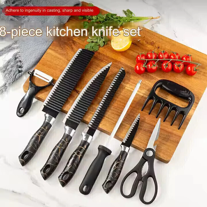 Kit de Facas c/Chaira Descascador Tesoura e Garra de Carnes em Aço Inoxidável 8 Pçs - d.k.l